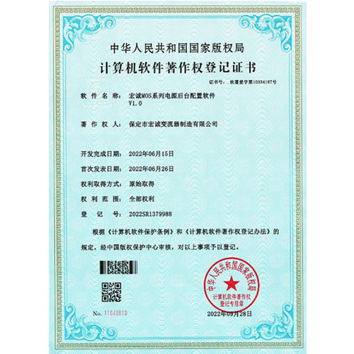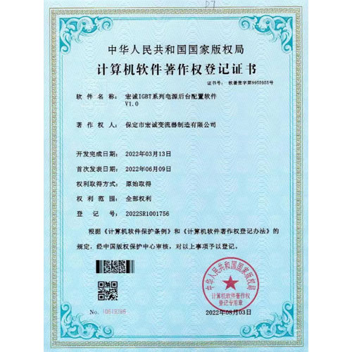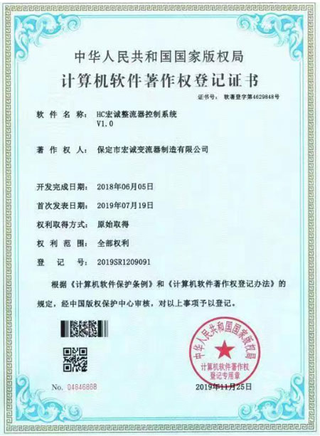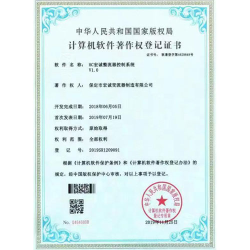 計(jì)算機(jī)軟件著作權(quán)登記證書--HC宏誠(chéng)整流器控制系統(tǒng)V1.0